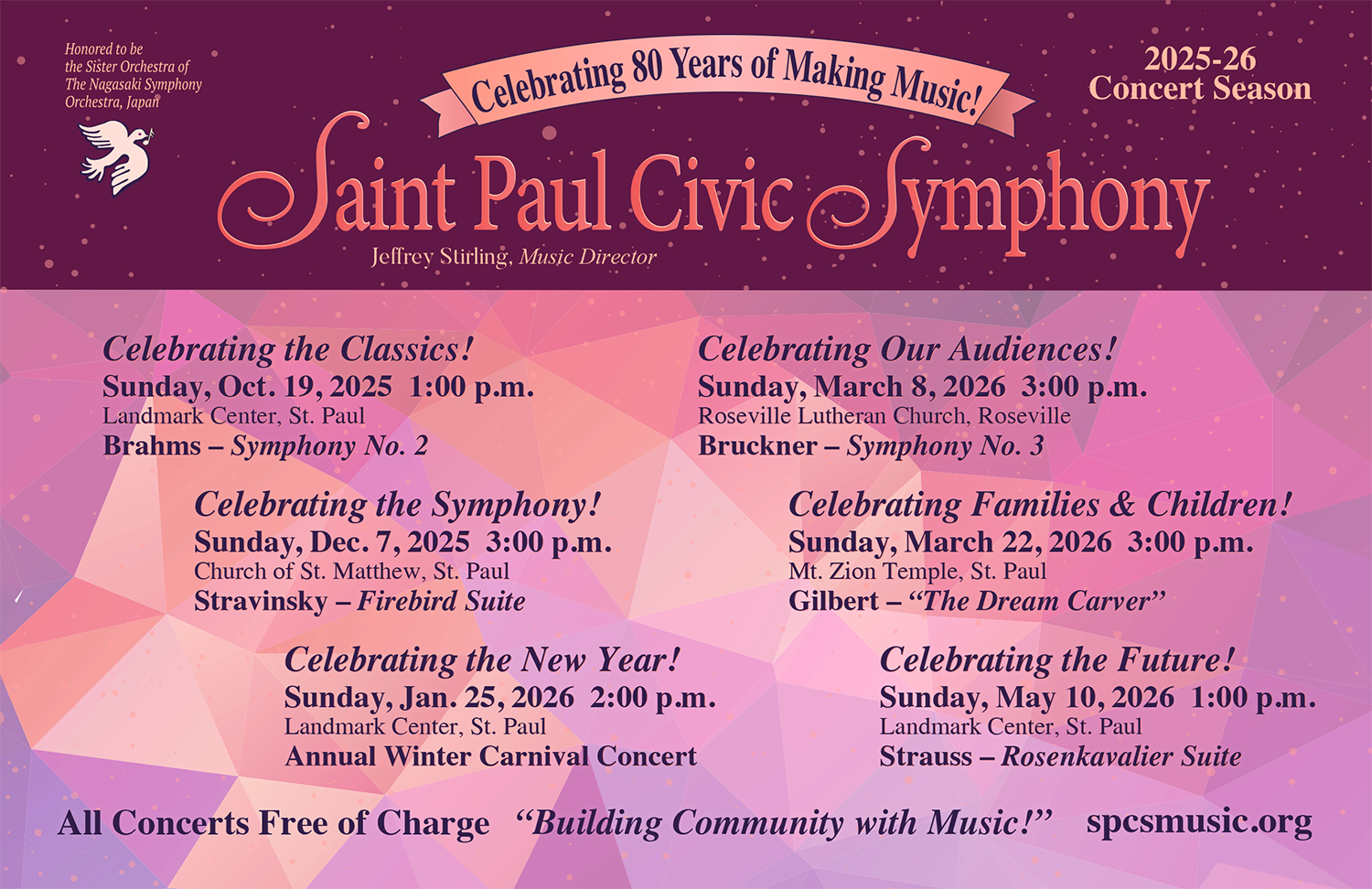 Won’t you help the Saint Paul Civic Symphony continue its tradition of performing FREE CONCERTS? Donating directly to the orchestra is the most cost effective. Here’s how:
